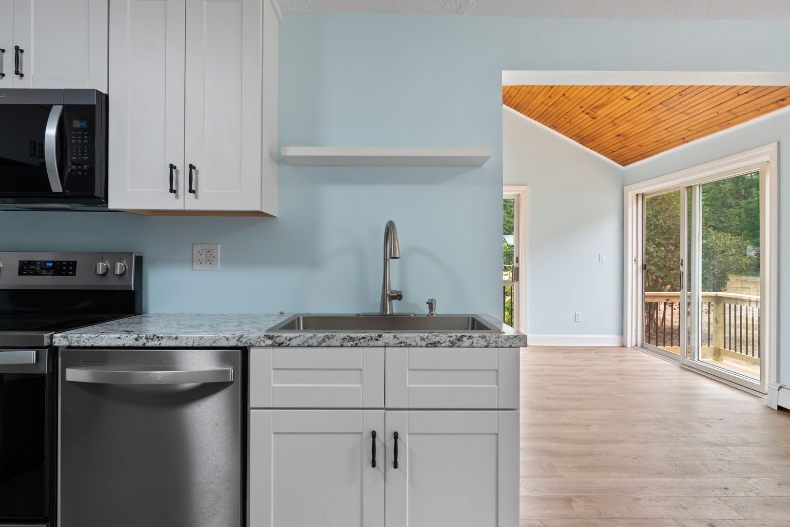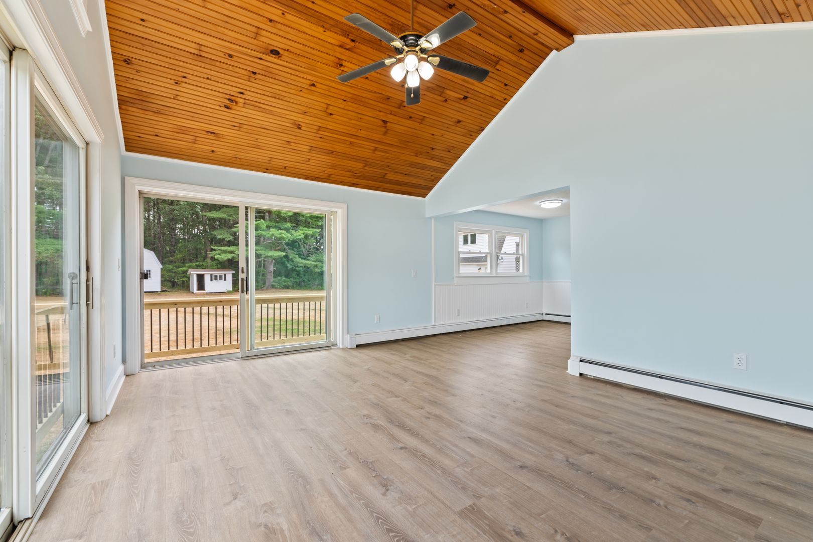 The living space is enhanced by tasteful updates and everyday comforts, including a wall-mounted TV for built-in entertainment. Step outside onto the front porch—an inviting extension of the home that’s ideal for enjoying fresh coastal air or unwinding at the end of the day.