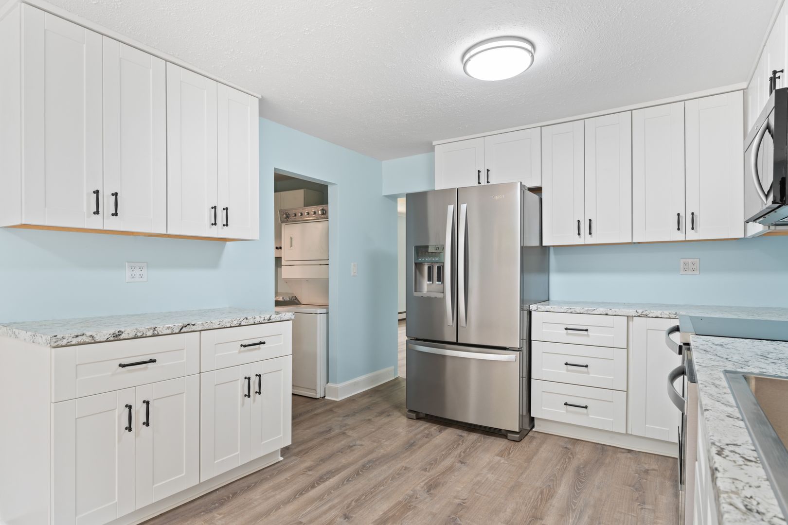 This residence comes fully equipped with in-unit laundry and a complete appliance package, including a washer and dryer, microwave, refrigerator, oven/stove, and dishwasher—making daily living both efficient and convenient.